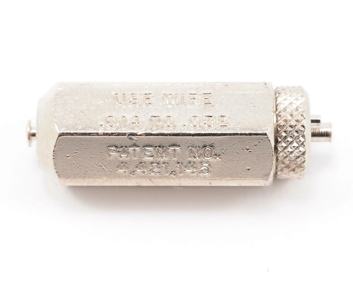 Thishandy tool enables you to tie perfect barrel wraps to each end of musicwire to make beautiful guy wires, using piano wire up to .032 (.8mm)diameter.ย