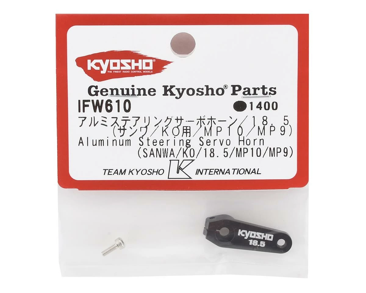 This is an optional Kyosho 23T Aluminum Steering Servo Horn. This 18.5 length clamp type servo horn is intended for use with MP10 kits and is compatible with Sanwa, JR, Airtronics and KO servos.