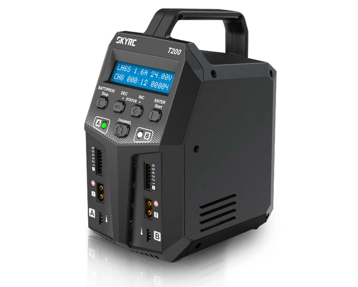 - Intuitive Operation: The five-button panel and the brightly backlit LCD screen make using the charger easy. The charging programs with the same flow as other SkyRC chargers, so it will be familiar to many users. But even if T200 is your first programmable charger, you’ll find it is easy to learn. Scroll through parameters, use up/down keys to adjust values, then click the enter key to set. After one run through the manual, you’ll have it down.