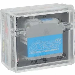 This is the Xpert 6000 Series “Super Torque” High Voltage All Aluminum Case Waterproof Brushless High Voltage Servo. This servo is waterproof for improved reliability in harsh conditions. Xpert servos feature brushless motors, combined with metal gears, 4096 resolution and a unique SIC (Single Integrated Circuit) to deliver incredible performance and durability. The design features a machined aluminum upper and lower case for incredible durability, with an aluminum middle case that provides optimized thermal dissipation. Additionally, over current protection, over temperature protection and a built in fail safe delivers reliability that make this servo a great choice for a variety of applications.