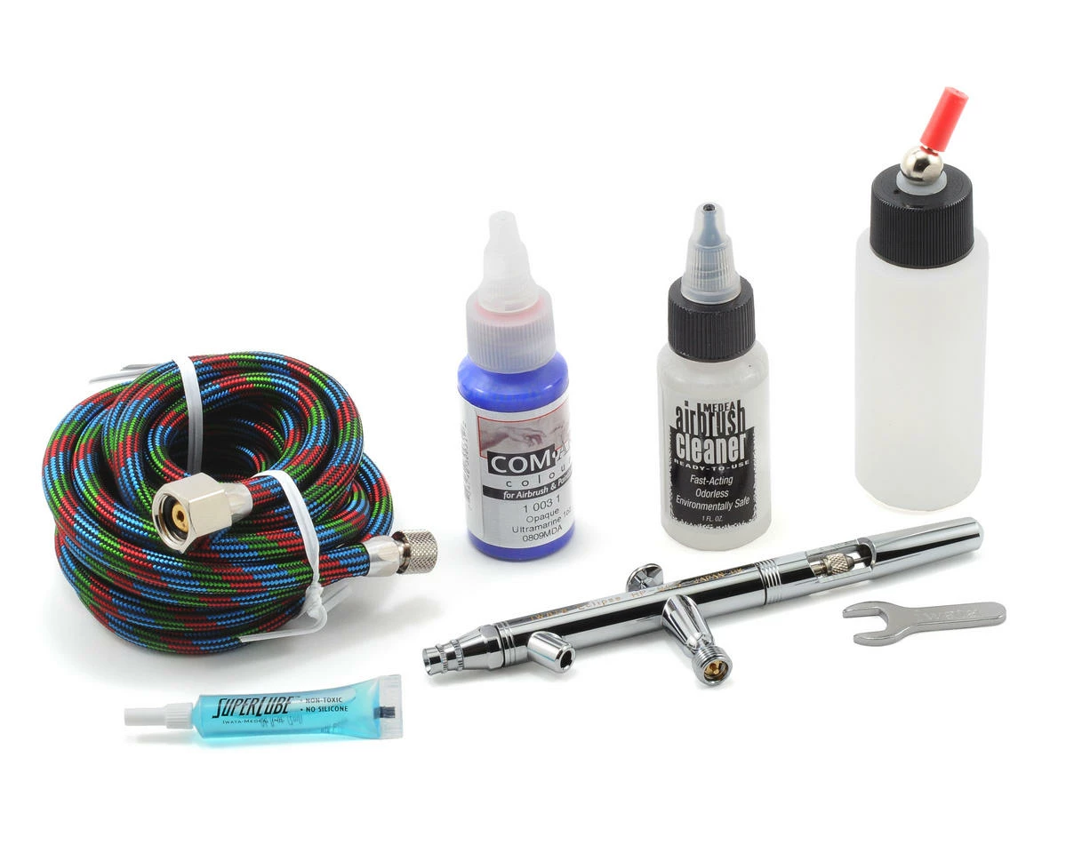 This is the awesome Iwata HP-BCS Airbrush set. This multi-purpose, high-paint-flow, high-detail Eclipse Series airbrush sets the standard in versatility, reliability and performance. The Eclipse Series covers a wide range of uses, and does it all with just one needle and drop in nozzle, making this airbrush one of the most versatile paint tools on the market.