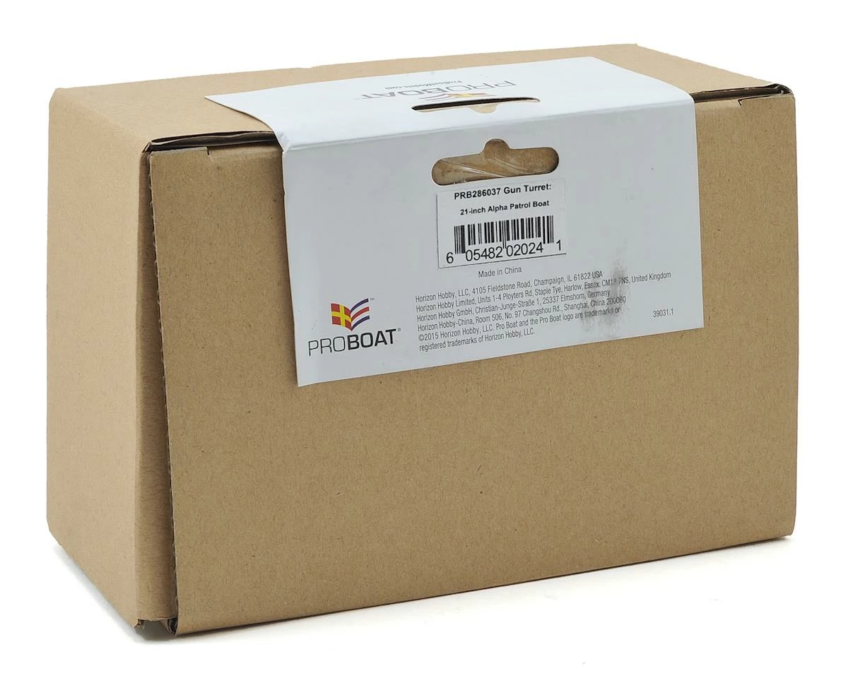 IMPORTANT: The included Alpha Patrol Boat Spektrum STX2 2-Channel Transmitter is not compatible with the optional servo driven gun turret; you will need a 3-channel transmitter.