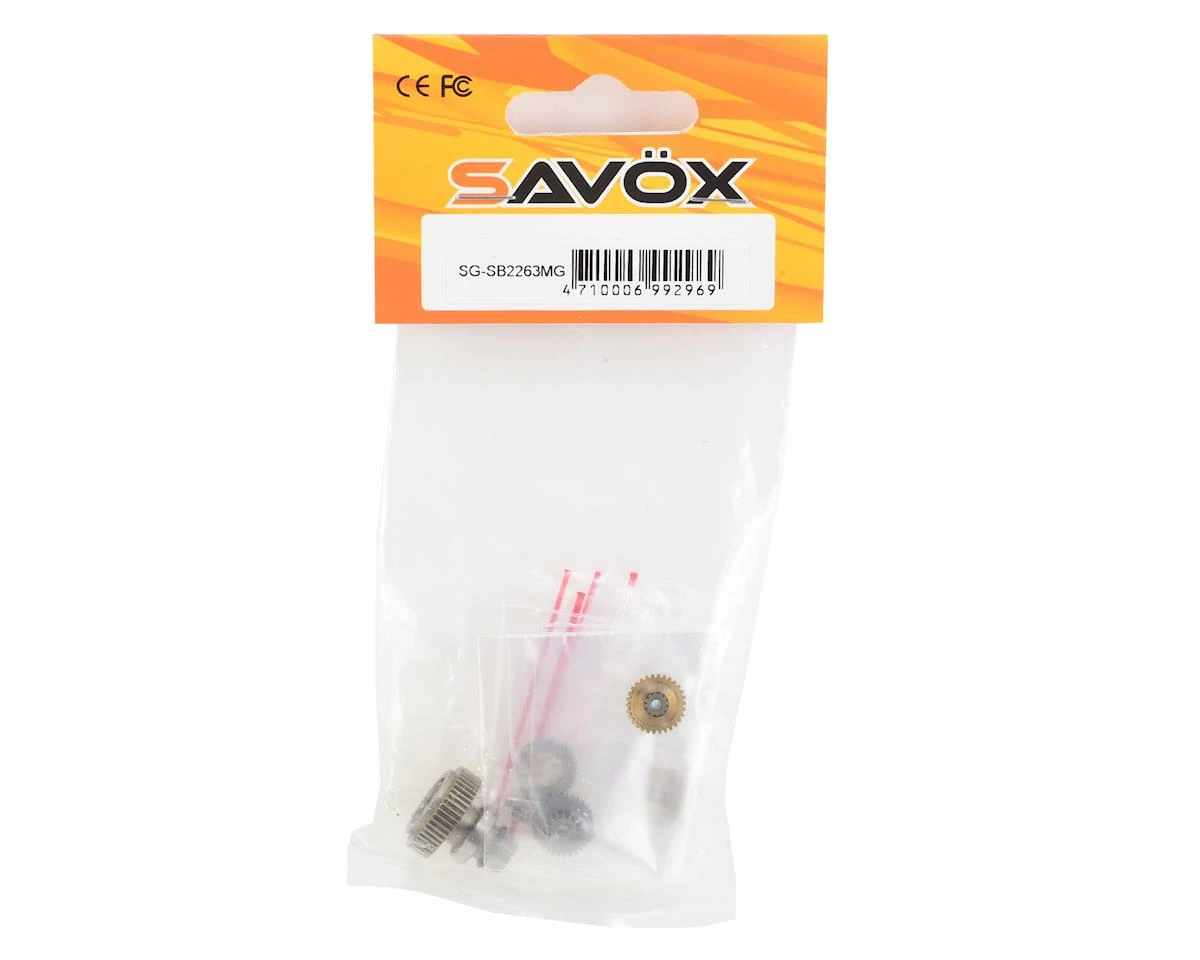 Savox SB2263MG Metal Gear Set. This package includes the gears, pins and bearing needed to replace the gear train in the SB2263MG servo.