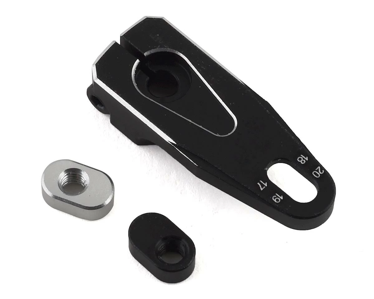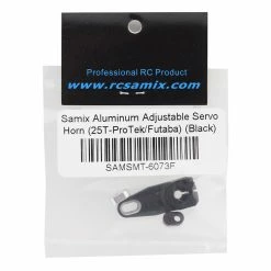 The Samix Aluminum Adjustable Servo Horn allows you to adjust the servo link mounting point on the servo horn in four increments – 17, 18, 19, and 20mm. This adjustment allows you to alter the feel and power of the steering. When mounted closer to the spline, it will create more mechanical torque. When mounted further from the spline, it will increase the speed and increase mechanical throw of the steering rack.ย