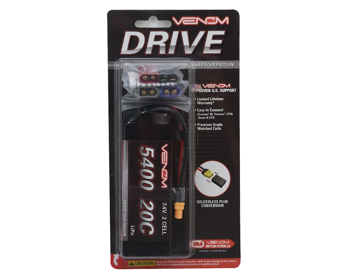 The Venom 20C 2S 5400mAh 7.4V LiPo Battery pack delivers performance and power. Developed to power a wide variety of remote-controlled products from your short course truck, buggy, monster truck, heli, jet, airplane or quad.