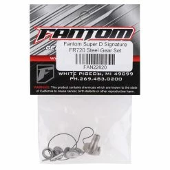 Fantom FR720 Steel Servo Gear Set. This replacement gearset is intended for the Fantom FR720 (FAN22720). Package includes one set of servo gears, three O-Rings, two bearings and two pins.