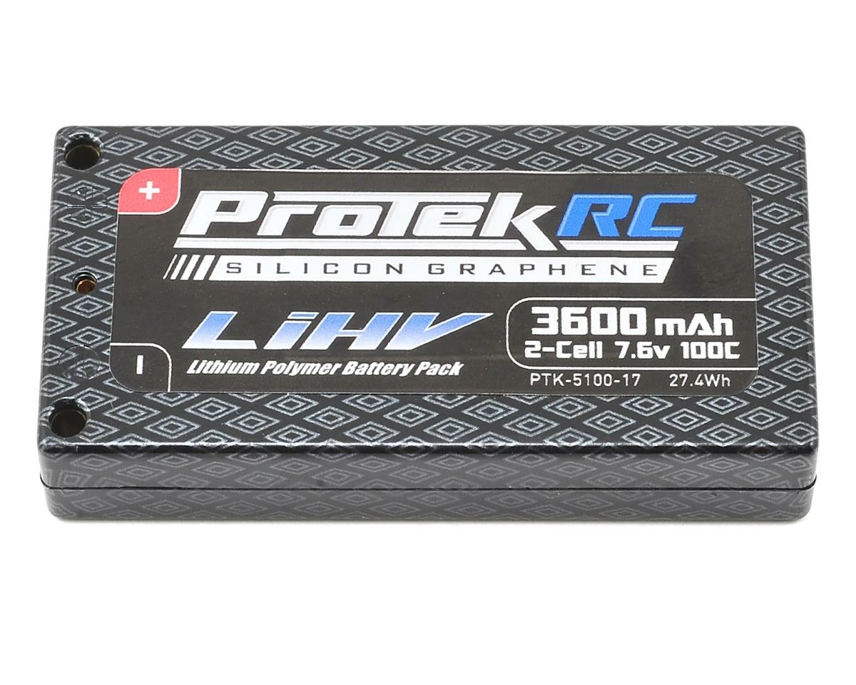 The ProTek R/C 2S 100C 3600mAh Silicon Graphene HV LCG Shorty LiPo Battery is a great battery option for any racer looking for a lightweight, shorty style battery. Weighing 148 grams, the LCG shorty is over two ounces lighter than a standard shorty pack, with a smaller footprint. This offers an improved power to weight ratio and a lower overall CG.