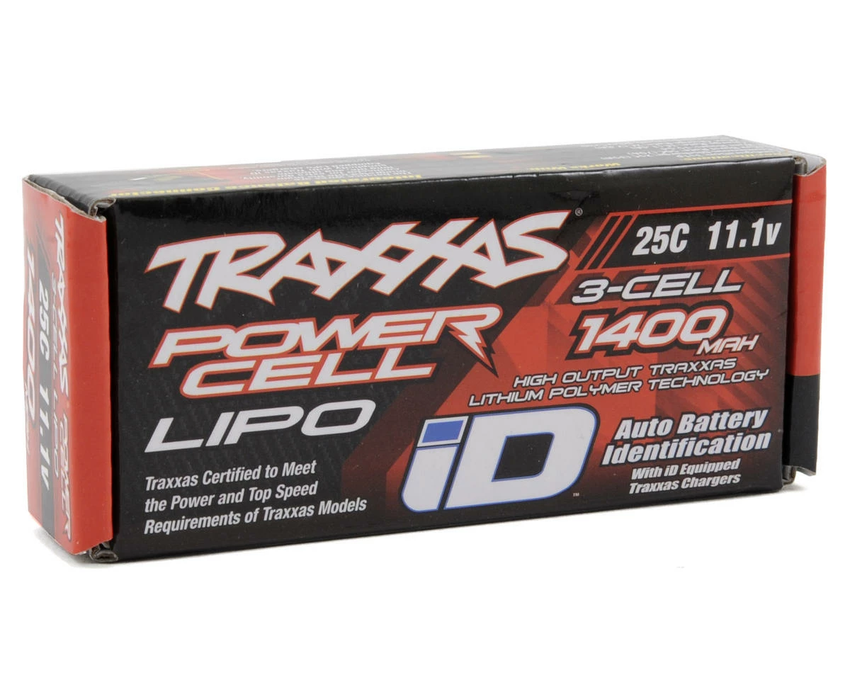 This is the Traxxas 3S, 11.1V, 1400mAh, 25C “Power Cell” Li-Poly Battery Pack with iD Traxxas Connector. This battery requires a Traxxas iD equipped LiPo charger to balance-charge!