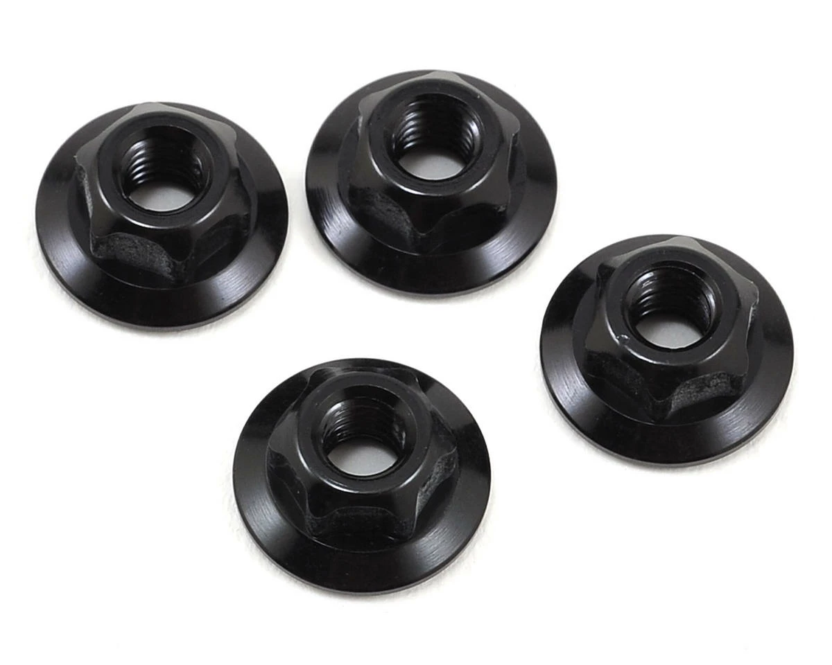 This is an optional JConcepts 4mm Large Flange Serrated Locking Wheel Nut Set. These high precision wheel nuts are designed with a large flanged area for additional support against the wheel and serrated for locking security. The large flange and clamping surface area supports the wheel and helps maintain geometry during flex and load. The larger area also provides more footing for the serrated area which provides a more comfortable lock-down. The JConcepts wheel nuts are light-weight and intended for use on the RC10B5, RC10B5M along with most Traxxas vehicles.