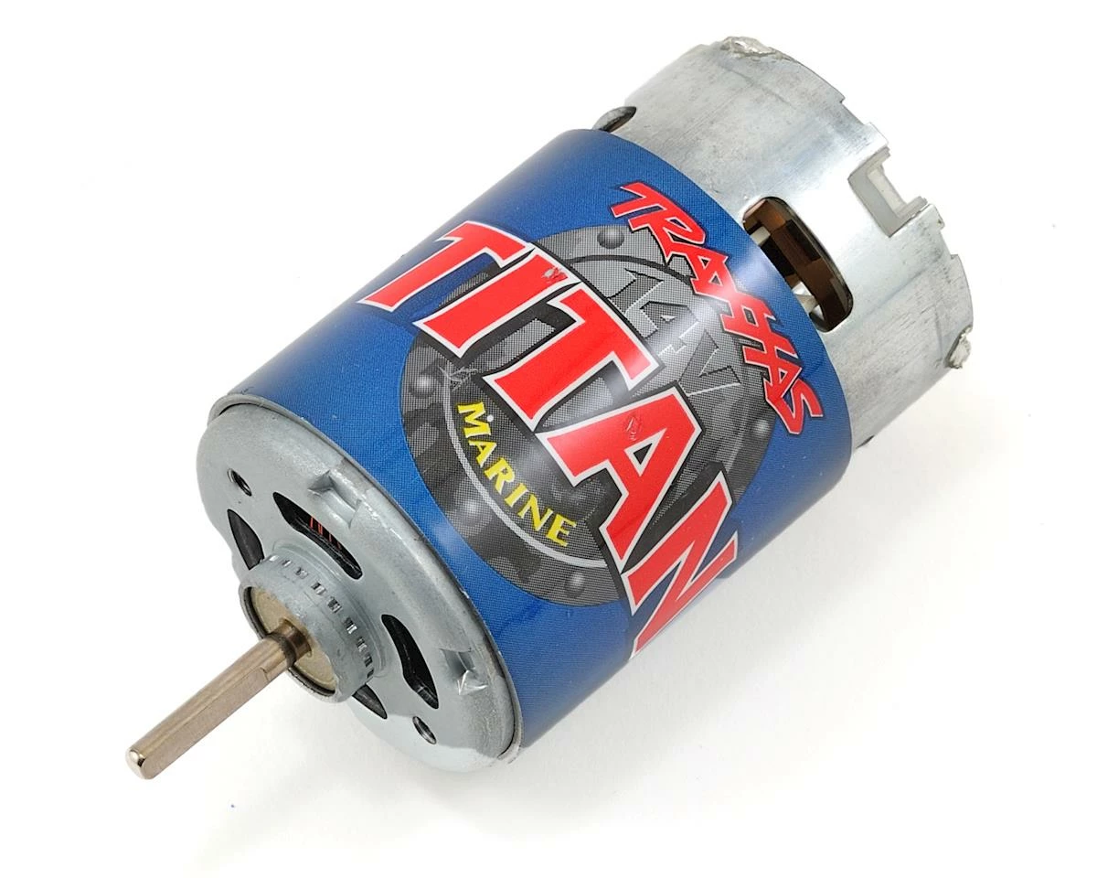 This is a replacement Traxxas Titan Marine 550 Motor, and is intended for use with the Traxxas Villain EX. This is a fan cooled, 24 turn, 14 volt motor with factory installed capacitors. Wires and connectors are not included.