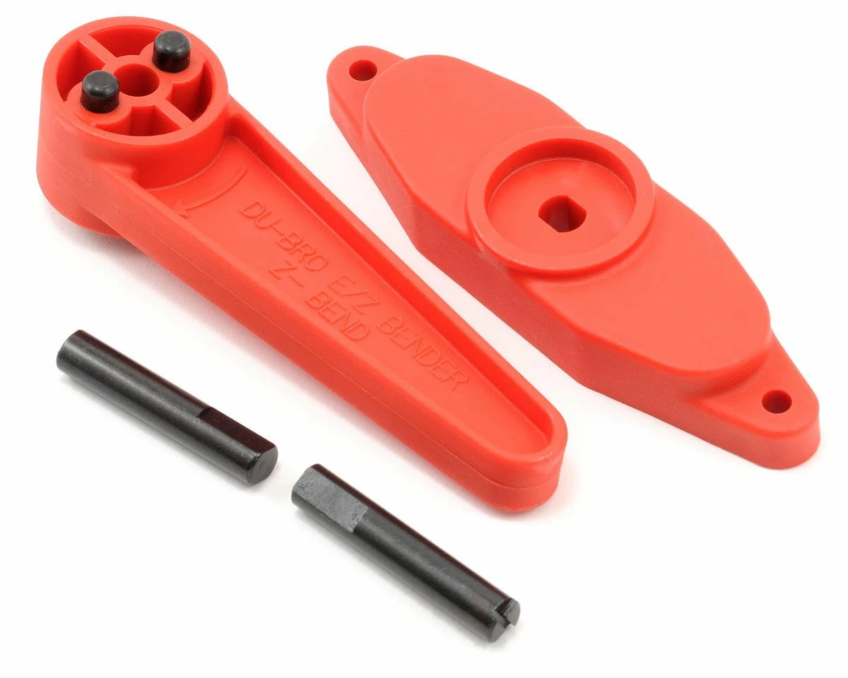 A commercial quality wire bender, built specifically for the hobby industry, which bends wires from 0º to 90º and makes perfect Z-bends, L-bends, landing gear and more. With one movement, the E/Z Bender will form wires to your exact specifications. The E/Z Bender features hardened steel forming dies for long lasting operation. It’s design was made to be a perfect addition to the modelers workshop. It can be hand held, or easily mounted to your workbench. It also fits perfectly in your bench vise.