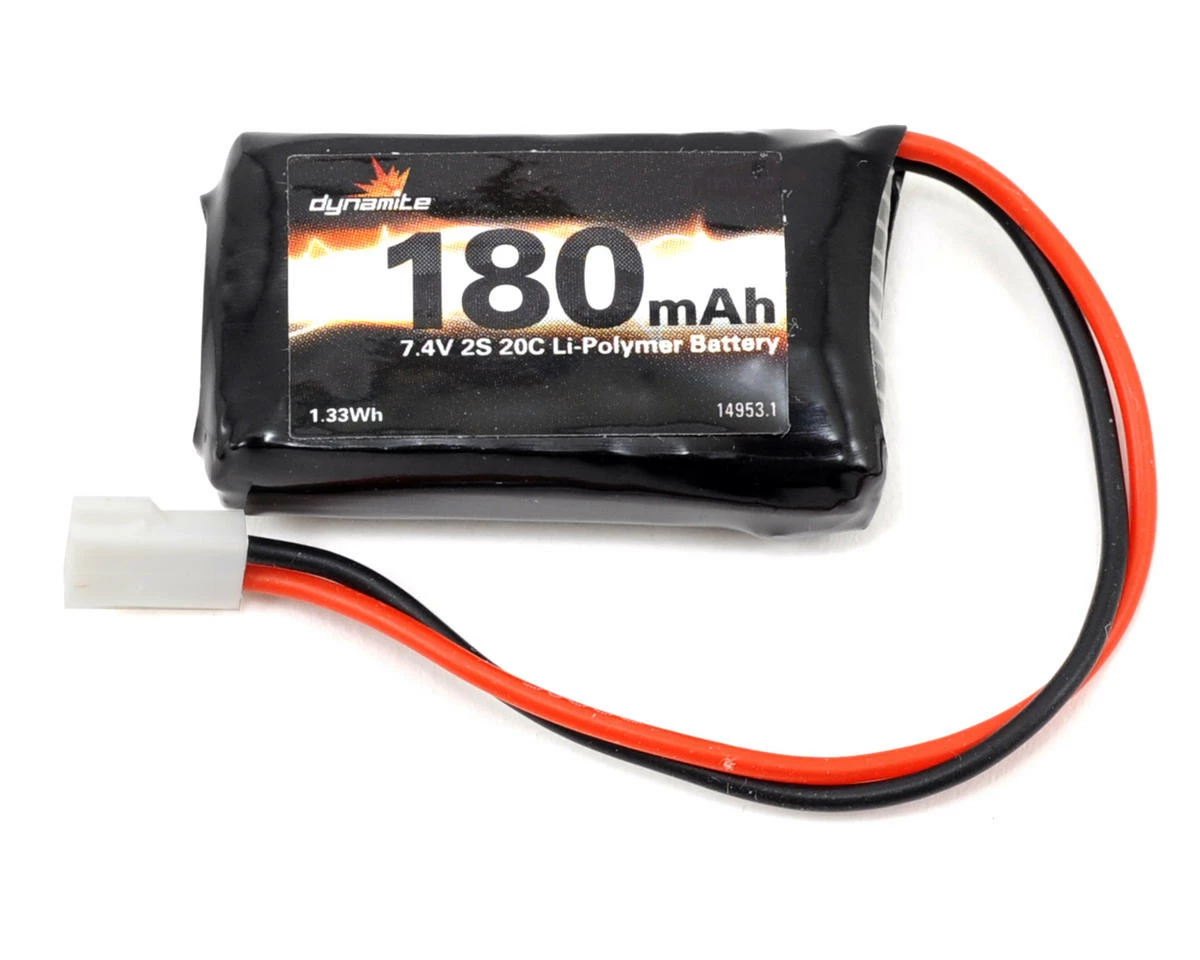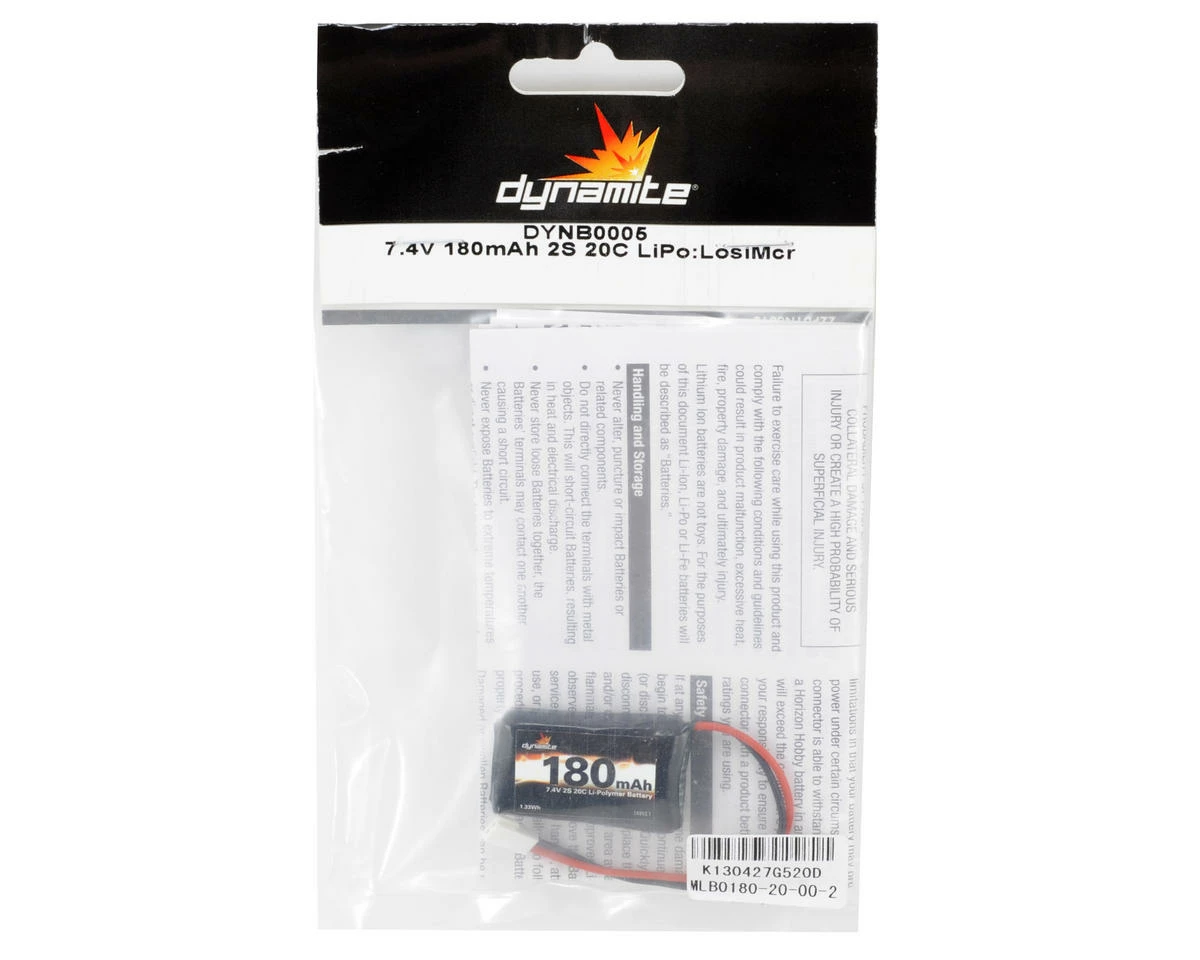 This is the Dynamite 2S Li-Poly 20C Battery Pack. Dynamite’s 7.4V, 180mAh, 20C Li-Po battery delivers longer run times and improved overall performance for your Losi extended chassis micro vehicles.