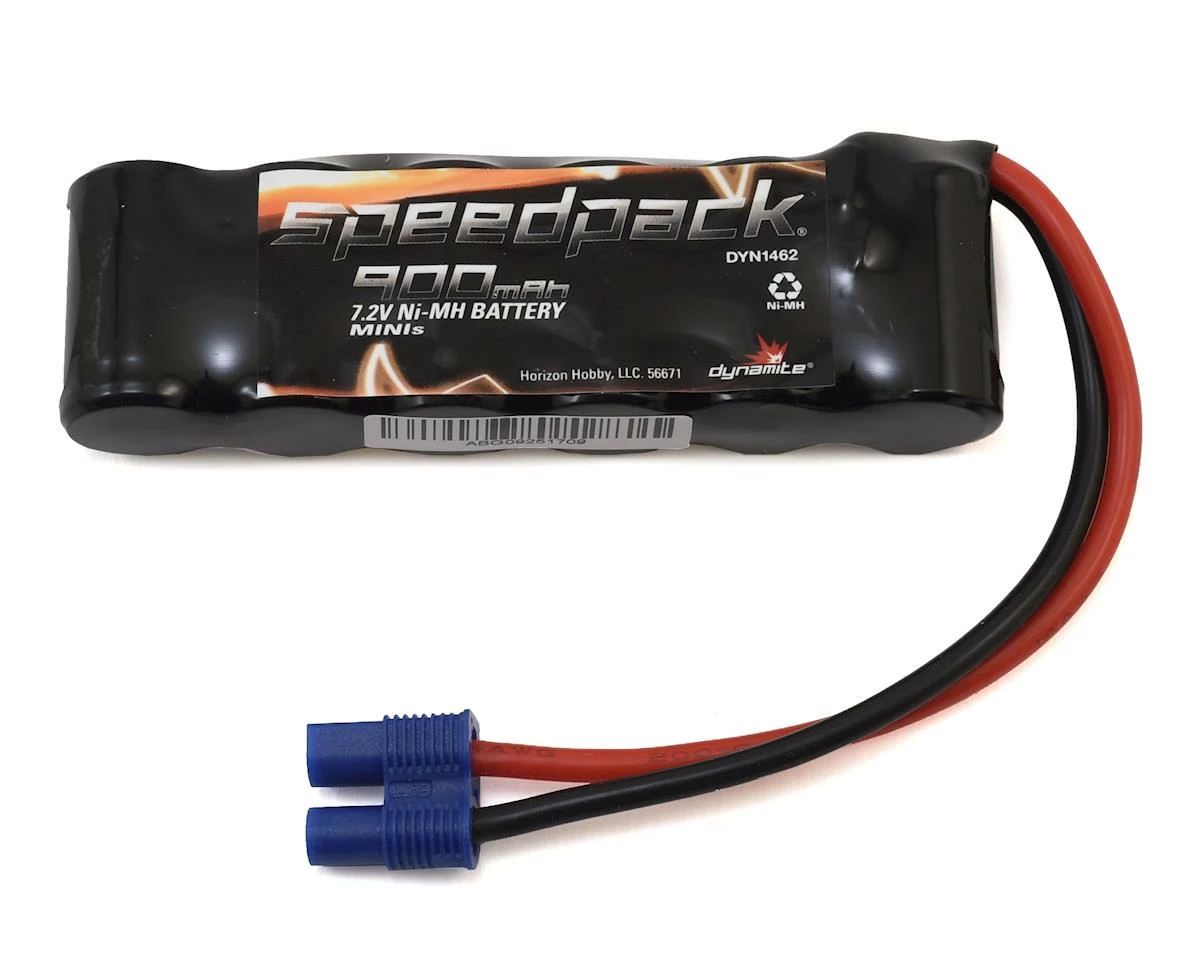 This is the Dynamite 7.2V 6-Cell NiMH Battery Pack with 900mAh capacity. This battery is equipped with an EC3 connector.
