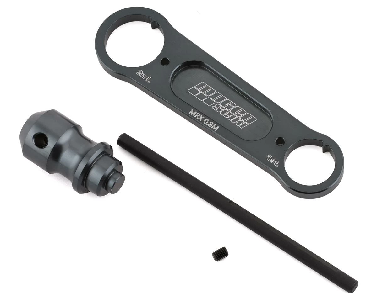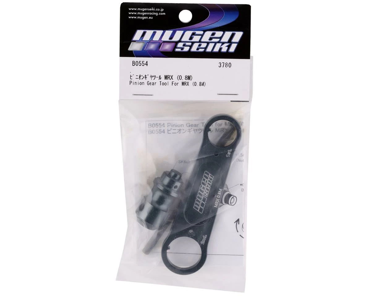 Mugen Seiki Pinion Gear Tool. This pinion gear tool is a great option for making maintenance a breeze. Designed to work with Mod 0.8 gears, using this tool will allow you to hold the first or second gear pinion and tighten it. Package includes one gear tool and one clutch bell lock.