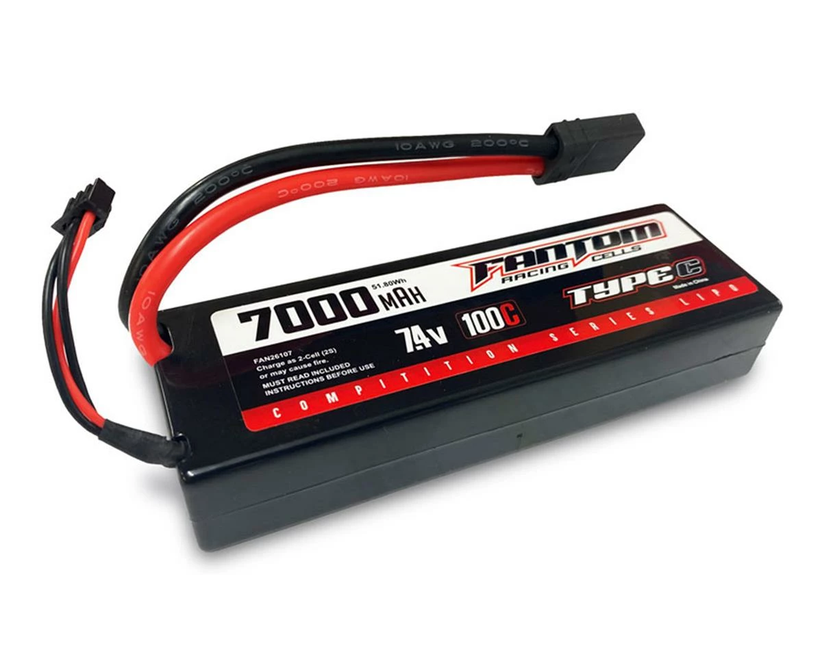 Fantom Competition Series 2S LiPo 100C Battery. This battery was developed with the weekend racer in mind. Fantom Competition Series batteries are just the ticket for club racing. Produced with premium grade materials (mostly from Japan) and with the latest state-of-the-art manufacturing processes.