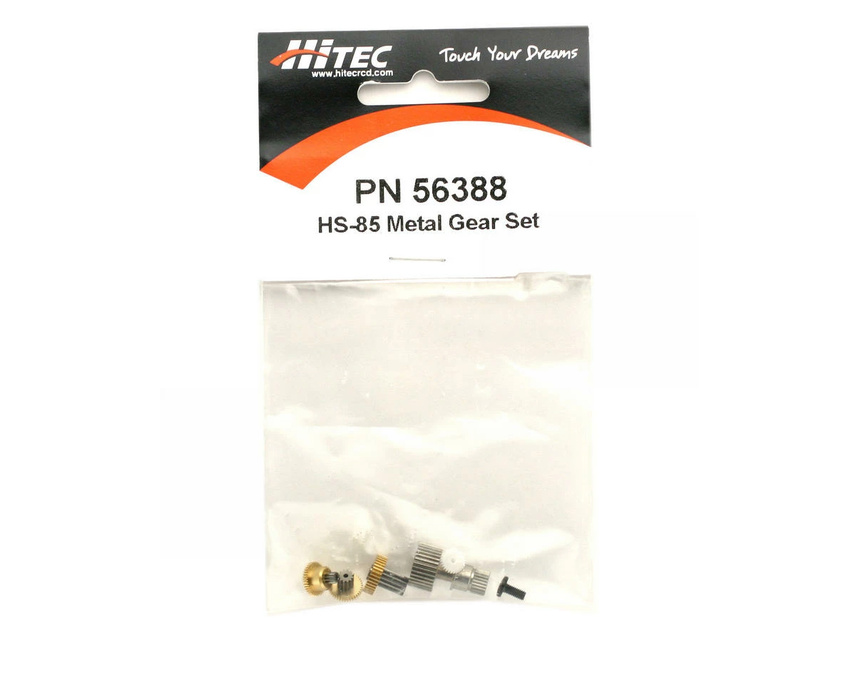 This is the replacement Metal Gear Set for the Hitec HS-85MG Servo.Metal gears provide strength and shock resistance, and replacing worngears restores proper performance to your servo.