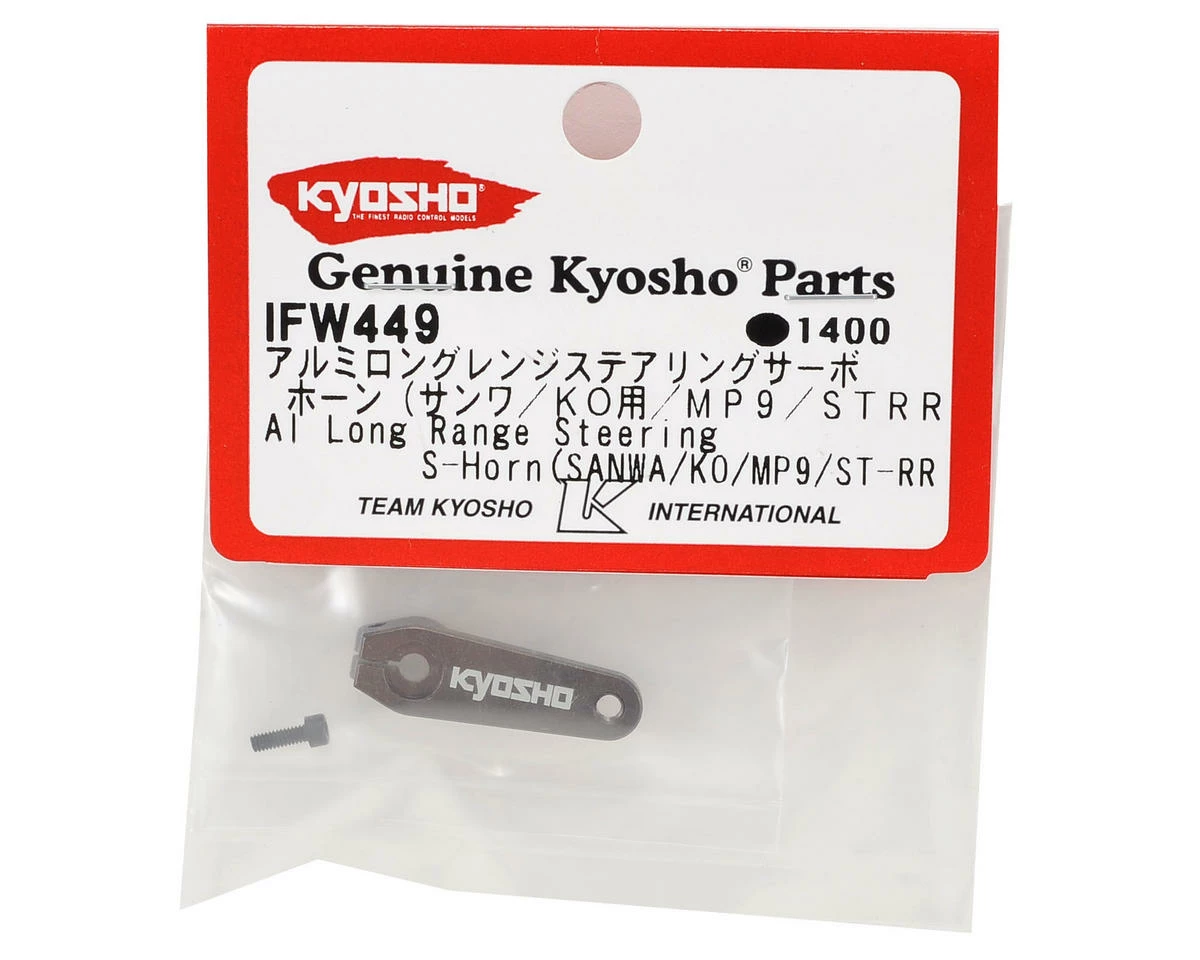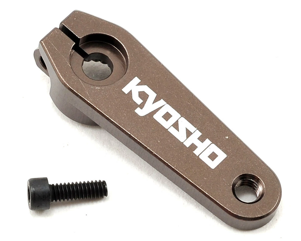 This is an optional Kyosho 23 tooth Aluminum Long Steering Servo Arm. This aluminum servo horn is compatible with all MP9/ST-RR series vehicles and is 2mm longer than the standard horn, for an increased steering feel. The horn is 30.5mm long and 2.5mm thick, and features a clamping design for added security, and a laser etched Kyosho logo.