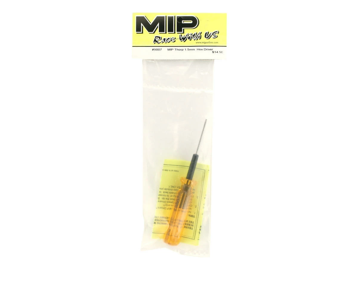 This is an MIP 1.5mm Thorp Hex Driver. MIP hex wrenches are precision ground with Diamond wheels for accuracy and unmatched strength. This Hex Driver features the classic Thorp polycarbonate handle that stays cool and allows you to apply 100% of your available torque with less fatigue.