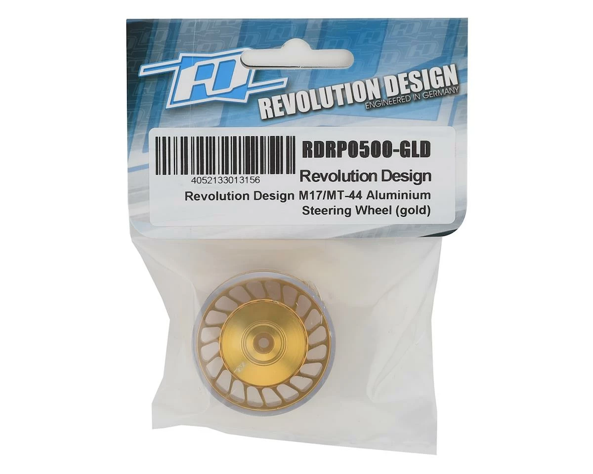 The Revolution Design Racing Products Sanwa M17/MT-44 Aluminum Steering Wheel is a quick and easy way to personalize your transmitter. Machined from high-quality aluminum, the steering wheel features a unique turbine design that greatly enhances the overall appearance of the transmitter while offering improved stability for a more precise steering feel. The steering wheel is available in a variety of colors, while machined silver color edge details and a laser-engraved logo make the wheel stand out. Combine this wheel with the RDRP Sanwa M17 Dial and Nut set (RDRP0501) for the ultimate in custom color combinations!