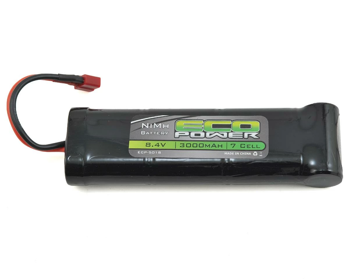This is the EcoPower 7-Cell NiMH Stick Pack Battery. This battery features 3000mAh capacity and is ideal for use as a rechargeable battery for your R/C model, as well as many other applications. The recommended charge rate for these batteries is 1C for the best battery life and run time.