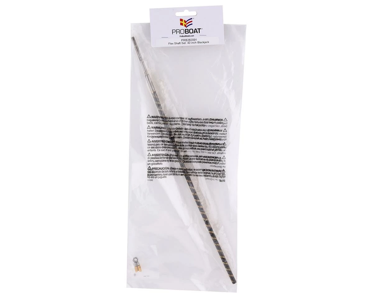 Pro Boat Blackjack 42 Flex Shaft Set. This replacement flex shaft is intended for the Pro Boat Blackjack 42. Package includes one flex shaft, one collet and two nuts.