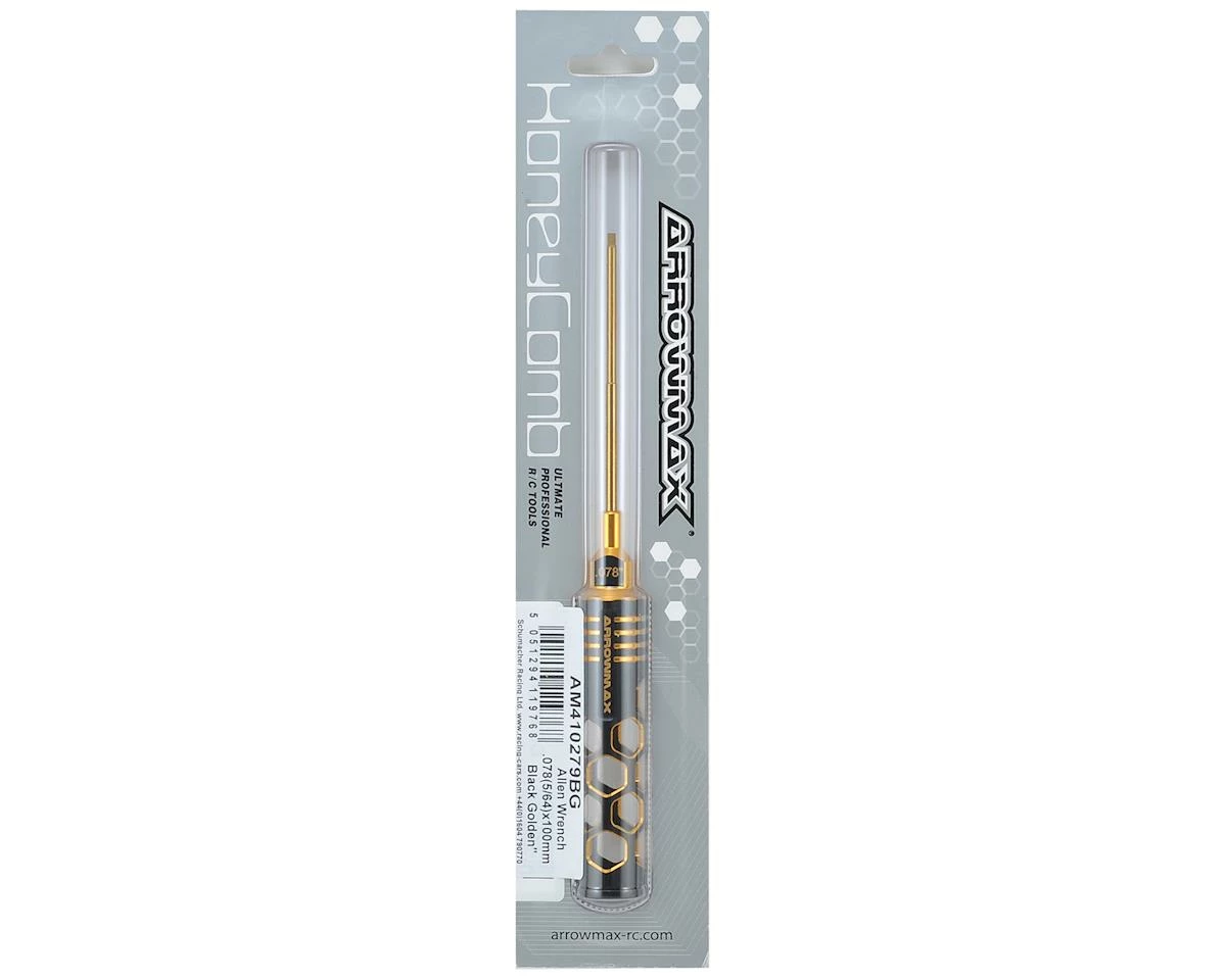 This is an Arrowmax Limited Edition 5/64″ SAE Allen Wrench. This honeycomb tool feature an eye-catching hollow honeycomb handle design with a rich black and gold color finish. Spring steel titanium nitride tip and lexan bottom cover provide a more comfortable, controllable and lighter feeling.ย