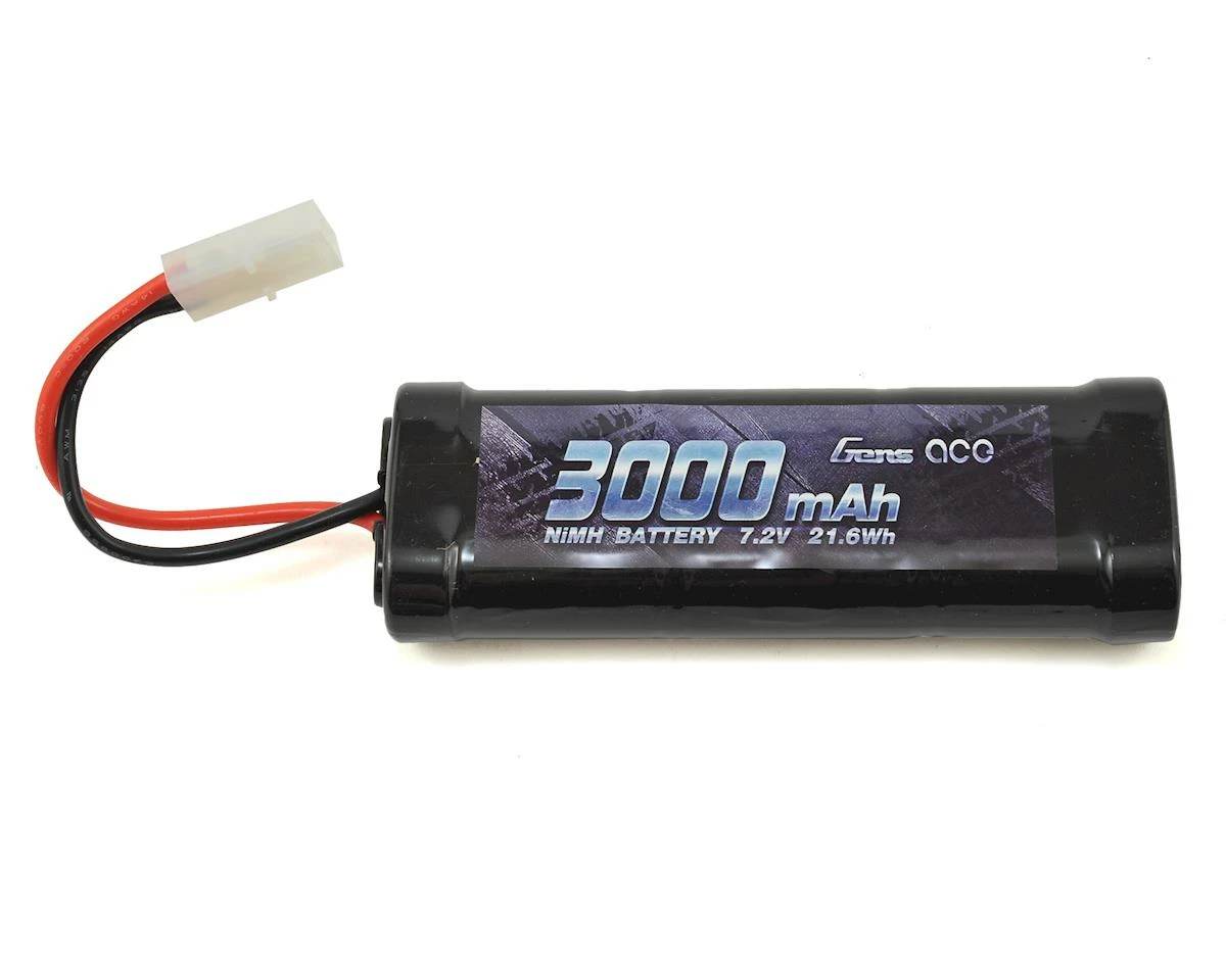 This is a Gens Ace 6-Cell, 7.2V, 3000mAh NiMH Battery Pack with Tamiya Connector. This stick pack is built using quality Sub C size 3000mAh NiMH cells and features a Tamiya connector. This pack will fit into any vehicle that uses a standard stick type battery pack. The recommended charge rate for these batteries is 1C for the best battery life and run time, and we do not recommend you charge them at more than 1C (3A Max).ย