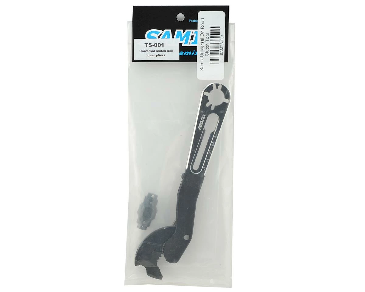 The Samix Universal On Road Clutch Tool makes it easy to assemble and remove 1/8 on road clutch bells and pinion gears. The multi-tool design features a flywheel wrench, a clutch bell shim tool and a wrench end. Machined from 7075 aluminum and hard coated for durability, this tool will make it easier to keep your clutch ready for action.