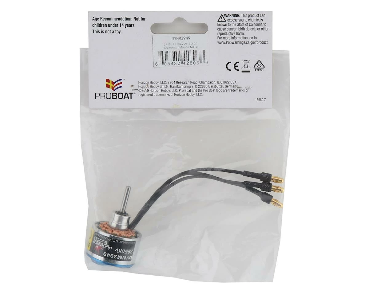 This is a Dynamite 8P BL 2950kv 28.5 X 31 Outrunner Marine Motor, intended for use with the Pro Boat 17″ Power Boat Racer Deep-V Brushless Boat.ย