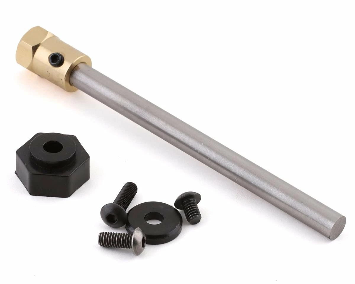The SXT Racing Break In Bit helps to simplify tire break in. This bit locks into your drill and allows you to mount any 17mm or 12mm hex wheel directly to the drill, so you can sand down your tires with ease. The Break in Bit is just over 4” long so nothing to worry about on clearance. Made from HSS steel with a wide brass hex to keep the wheel stable and locked down with double set screws. The Longest screw is for 1/8 tires, medium screw is for rear 1/10 tires, and the short screw is for front 1/10 tires.