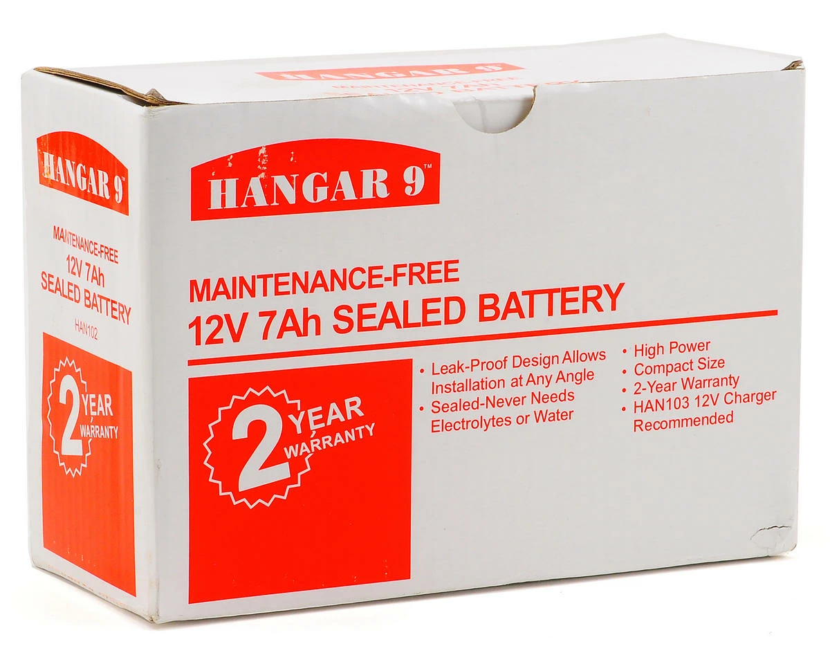 This is a Hangar 9 12V 7Ah Sealed Gel Cell Battery.
