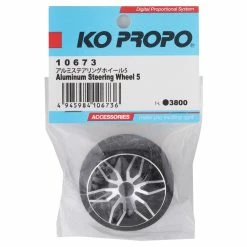 The KO Propo Aluminum Steering Wheel 5 is the replacement wheel for the EX-NEXT transmitter. However, it will work as an optional wheel for the EX-1, EX-2, EX-RR, EX-6, EX-6R, EX-LDT(KIY), NEXT, EX-5 and EX-10 transmitters. Package includes one steering wheel, backing plate and hardware.