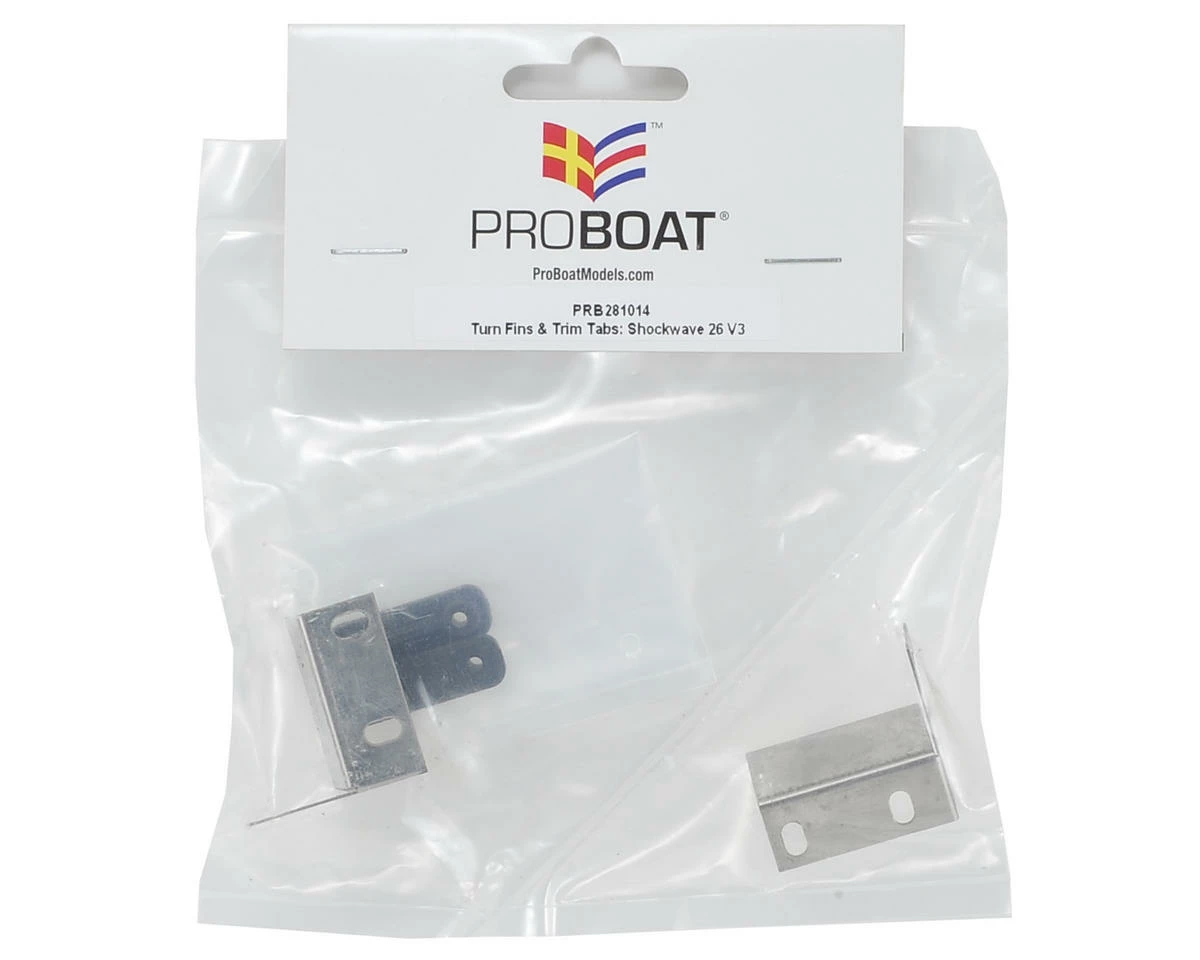 This is a replacement Pro Boat Turn Fin & Trim Tab Set. Package includes two turn fins and two trim tabs.