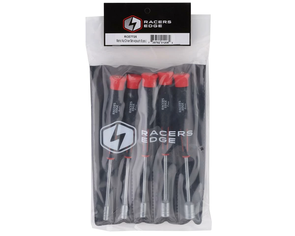 The Racers Edgeย Metric Nut Driver Set with Pouch is a great addition to any RC enthusiast tool collection.ย Featuring five nut drivers with comfortable handles, spinner top and made from a diecast alloy. Package includes one pouch and one each 4mm, 5.0mm 5.5mm, 7mm and 8mm nut driver.