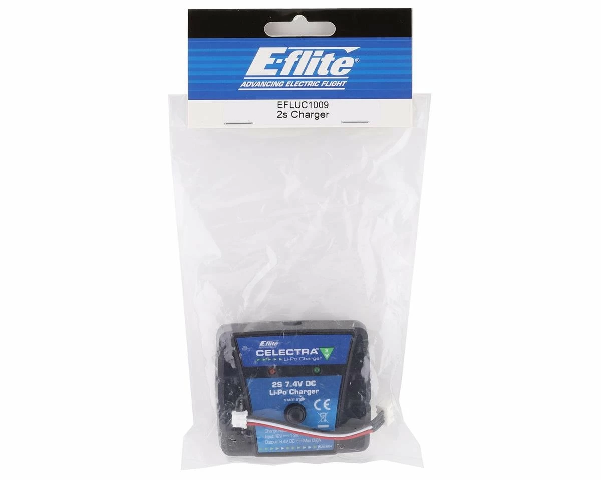 The E-flite Celectra 2S 7.4V DC LiPo Charger is intended for the UMX series plane and their compatible 2S batteries. Package includes one DC charger.
