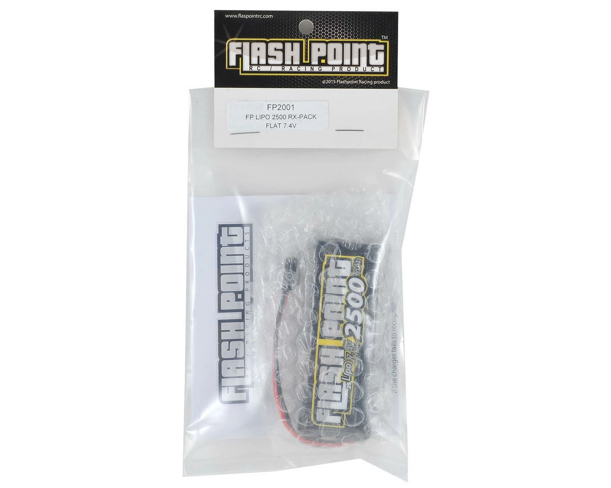 This is a Flash Point RC Flat Style 2s LiPo Receiver Battery. The 2500mAh capacity is well suited for use as a receiver battery pack for nitro powered vehicles such as 1/8 scale buggies and truggies. Additionally other vehicles can utilize this battery if the dimensions match to the battery mounting area. Additionally this can be use for transmitters which accept 2s 7.4V LiPo input.