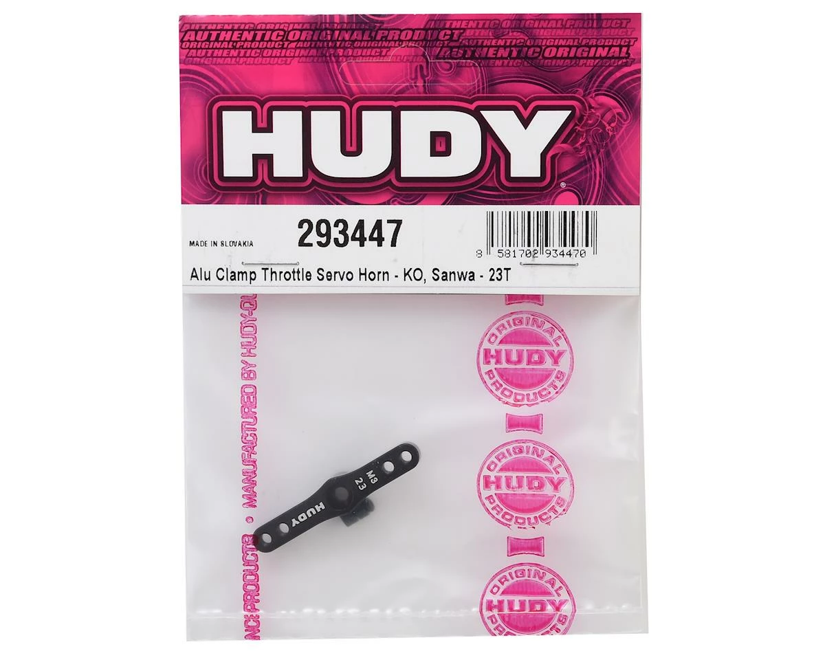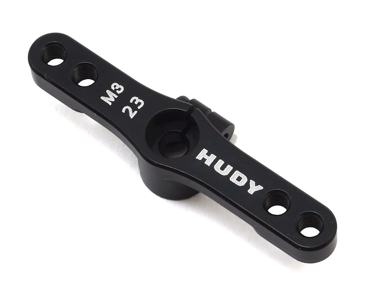 The Hudy Aluminum Clamping 2 Hole Servo Horn is a CNC-machined throttle servo horn. The clamp design allows easy assembly and maximum strength to eliminate the flex associated with composite servo horns. Ultra-strong construction provides very long life and durability. Drilled and tapped for 3mm-linkage hardware. Machined from strong Swiss 7075 T6 aluminum and black coated. Laser engraved for easy identification. Package includes one 23 tooth double arm clamping servo horn.