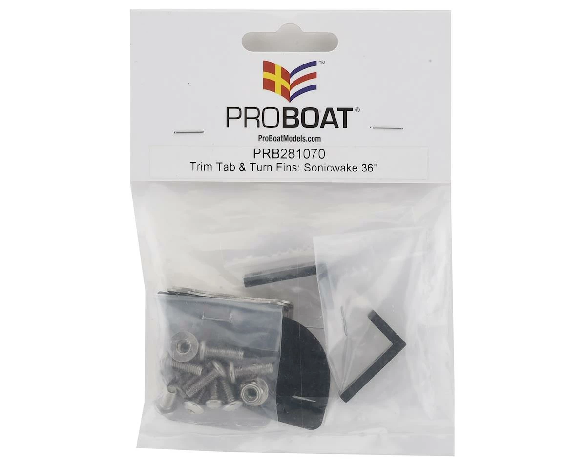 Pro Boat Sonicwake 36 Trim Tab & Turn Fin Set. Package includes replacement trim tabs, turn fins and hardware.