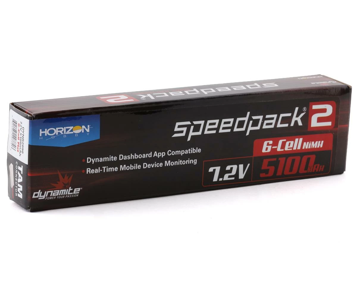 Dynamite “Speedpack2” 6-Cell Flat NiMH Battery with Tamiya Connector. This Nickle battery is compatible with the Dynamite Dashboard app. The Dynamite Dashboard app integrates the batteries with Dynamite’s own Passport Series of chargers and brings real-time monitoring to your mobile device.