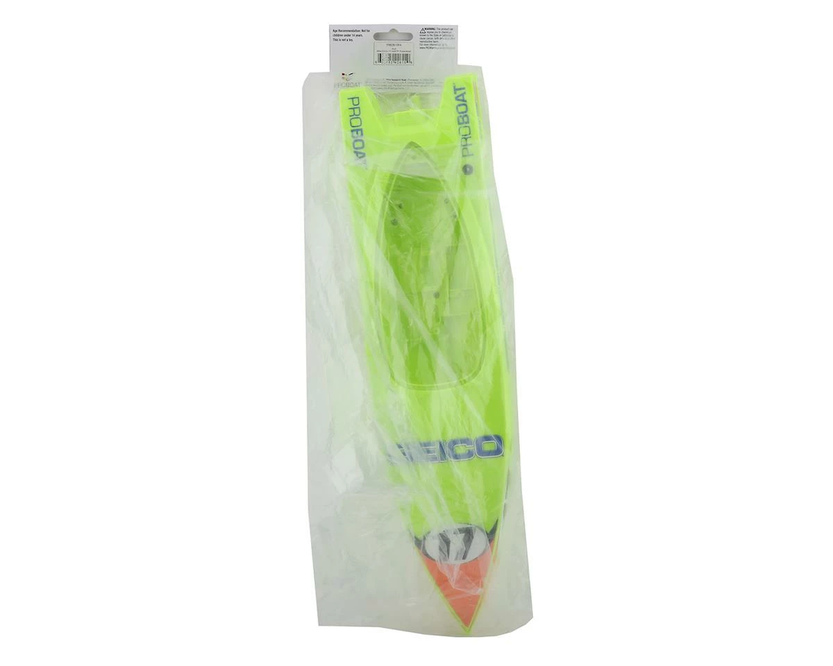 This is a replacement Pro Boat Miss Geico Power Boat Hull, intended for use with the 17″ Deep-V Power Boat Racer.