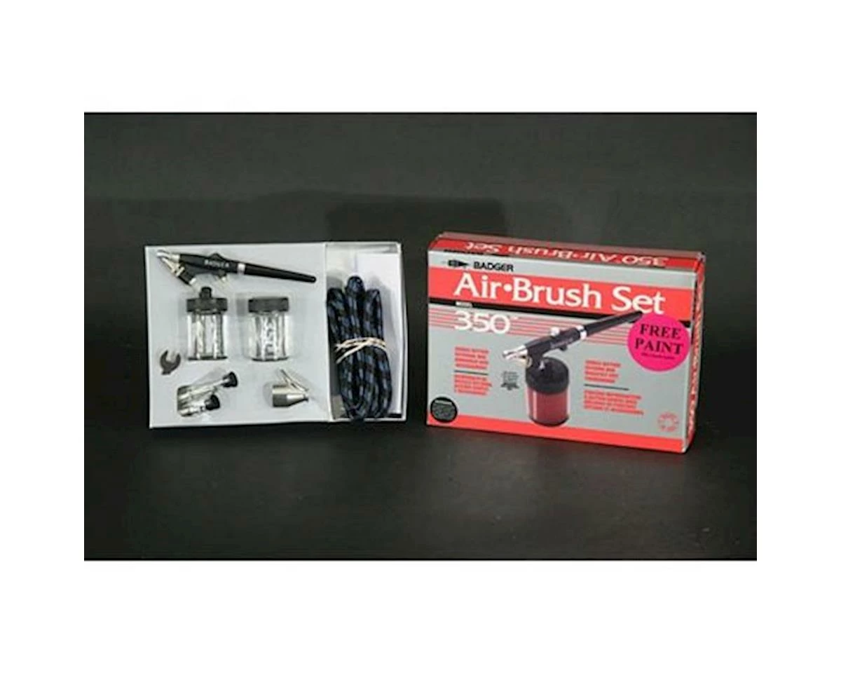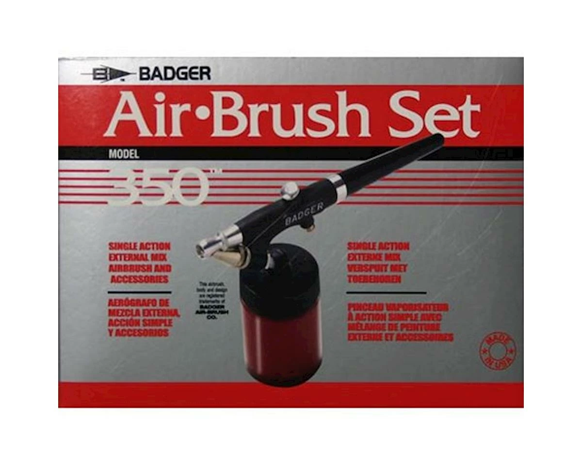 The 350® is an external mix airbrush. Air and paint mix outside the airbrush, creating a larger, coarser “dot” pattern and providing a heavier spray volume. The 350® is superb for base coating, stenciling, stipling, touch up projects, etc. An excellent choice for beginning students, hobbyists, ceramists, and automotive painters. This model sprays high viscosity materials such as ceramic glazes and stains, and hobby enamels with ease. It is also effectively used with properly reduced acrylics, inks, dyes, watercolors, acrylic lacquers, enamels, Air-Opaque™, Air-Tex®, Spectra-Tex® and MODELflex® airbrush colors.