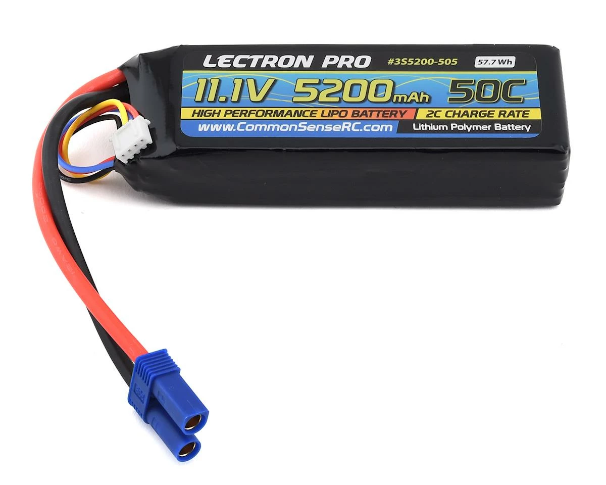 This is the Common Sense Lectron Pro 3S 50C LiPo Battery with 5200mAh capacity. Designed for guys who want to push their brushless vehicles to the limit, this 3S battery lets you take full advantage of your power system. Features a huge capacity for extended runtimes, and a 50C rating for lots of power. Competitively priced, this lipo is a great combination of features and value.