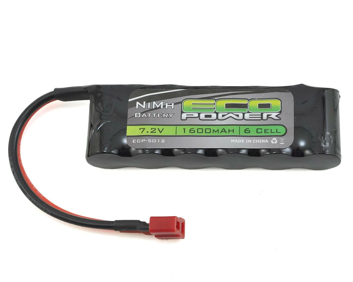 This is the EcoPower 6-Cell, 7.2V, 1600mAh NiMH Flat Battery Pack. This battery features 1600mAh capacity and is ideal for use as a rechargeable battery for your R/C model, as well as many other applications. The recommended charge rate for these batteries is 1C for the best battery life and run time.