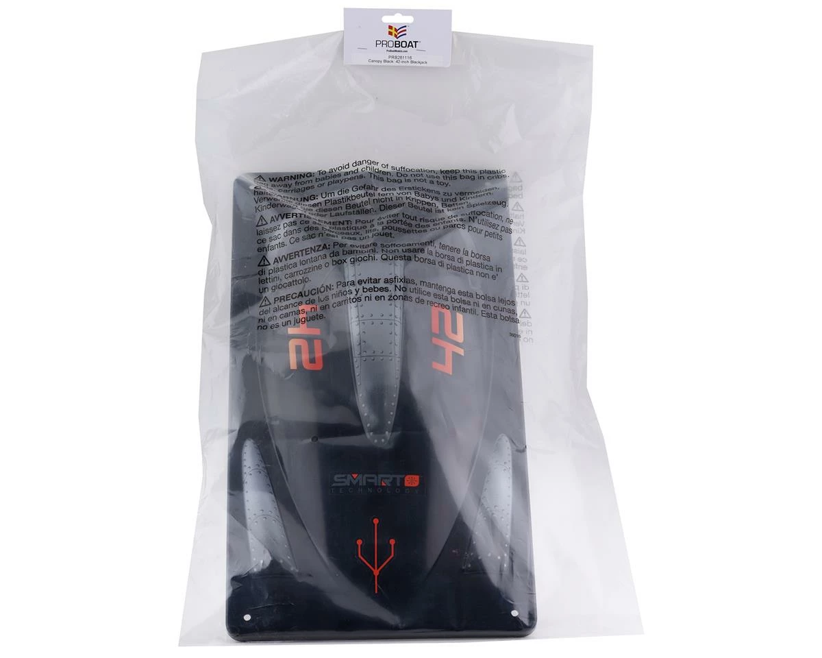 Pro Boat Blackjack 42 Canopy. This replacement canopy is intended for the Pro Boat Blackjack 42. Package includes one canopy with decals.
