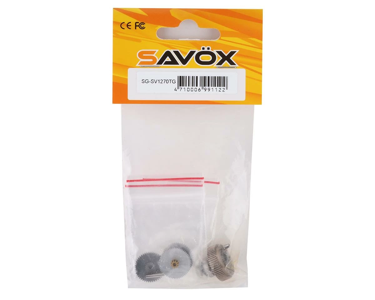 Savox SV1270TG Servo Gear Set with Bearings. These are replacement gears intended for the Savox SV-1270TG. Package includes one complete gear set with pins and bearings.