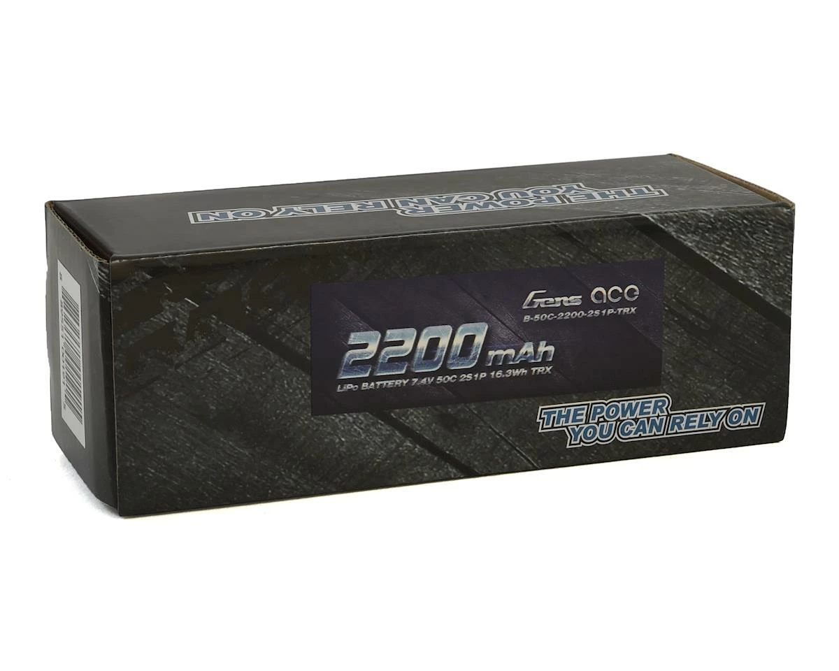 The Gens Ace 2S 50C 2200mAh Soft Case LiPo Battery Pack features an XT60 connector to be compatible with the Traxxas 1/16 E-Revo and VXL, 1/16 Summit, 1/16 Slash, Losi 1/14 mini 8IGHT, as well as some helicopter models.