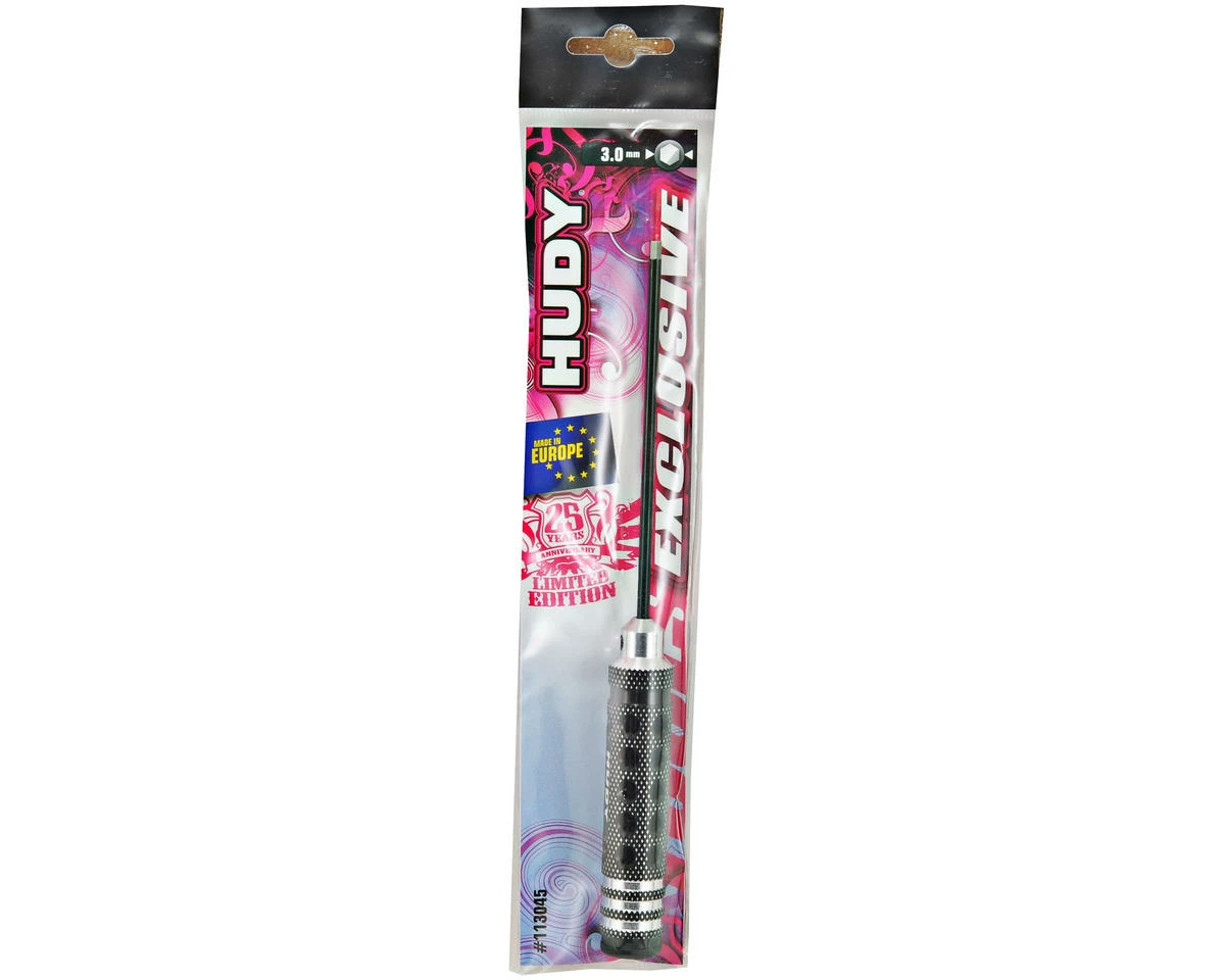 This is the Hudy Limited Edition, 3mm Metric Allen Wrench. Featuring a super-lightweight CNC-machined Swiss 7075 T6 aluminum handle with a diamond pattern surface for unsurpassed grip. The handle includes a black plastic cap press fit into the handle end. Optional color-coded plastic caps (violet, red, blue) are available to customize the tools to your specifications.