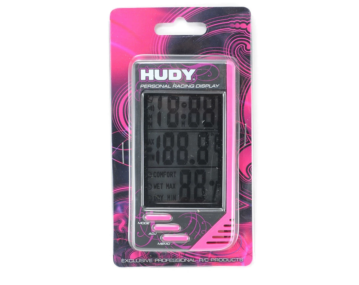 The HUDY Personal Racing Display is a compact all-in-one data center for professional RC car drivers, allowing you to record pertinent data for your set-up sheets. The display features large character and symbols for quick and easy readings. Aside from all of the data information, the built-in adjustable alarm clock can be used to notify you of your next heat or run. Powered by AAA 1.5V battery (not included). A “must have” device for serious racers.