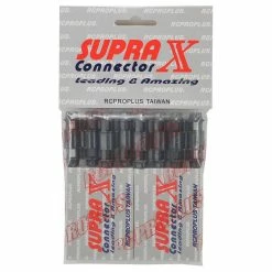 This is the RCPROPLUS Pro-D6 Supra X Battery Connector Set. Featuring a unique patented banana plug lock design, these Pro-D6 connectors securely lock in place, handling quick movements and vibrations, commonly found during extreme 3D flights, without coming apart. The stronger jacket and snaps extends the advantages of the previous generation of Supra X Connectors and makes them better.