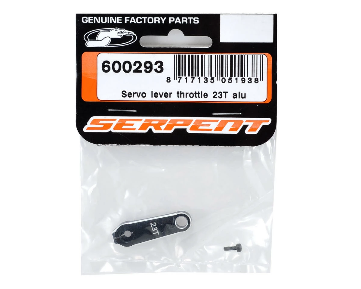 This is an optional Serpent Aluminum Throttle Servo Arm, and is intended for use with the Serpent S811 Cobra and Cobra TE 1/8 buggies, as well as the Cobra-T 1/8 truck and Cobra GT 1/8 on road car. This servo arm is compatible with servos that use a 23 tooth spline output shaft.